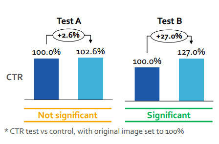 But, just to be extra sure, we took a closer look at the testing environment. What we found was that in cases where changing the image made it stand out from all the other images, we saw uplift. However, if there was already a variety of image types on the page, changing the product image had no effect.